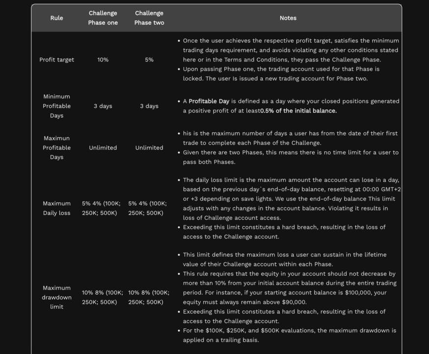 For example, high-frequency trading (HFT) is typically not allowed in most challenges because it cannot be effectively replicated during the funded trading stage.