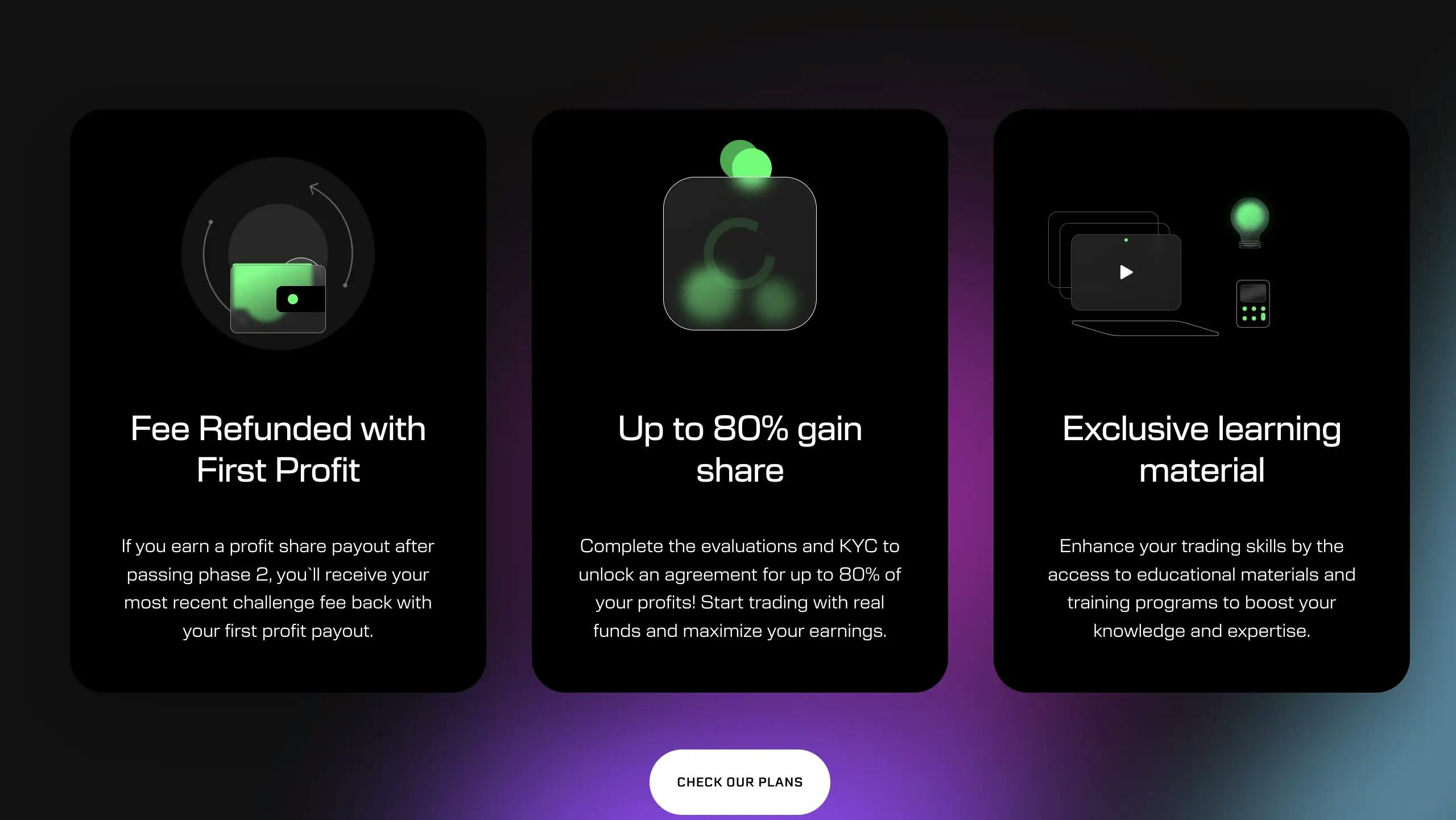 - Earnings: Funded traders typically keep a percentage of their earnings, ranging from 50% to 90%, depending on the prop firm's terms and the trader's performance. For example, IC Funded initially gives you 75%, and after one month, you keep 80% of the earnings.
